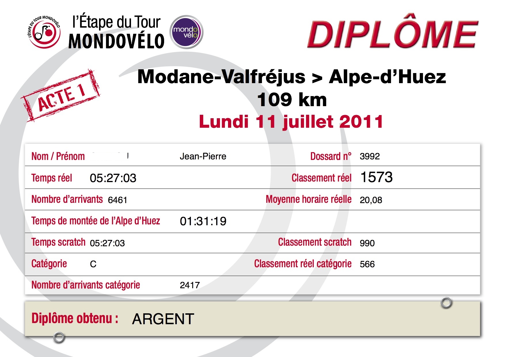 Dommage que ASO ait commis des erreurs, notamment pour ma date de naissance ce qui m’empêche un très bon classement « catégorie » et la médaille or ou…. en chocolat (j’adore) !