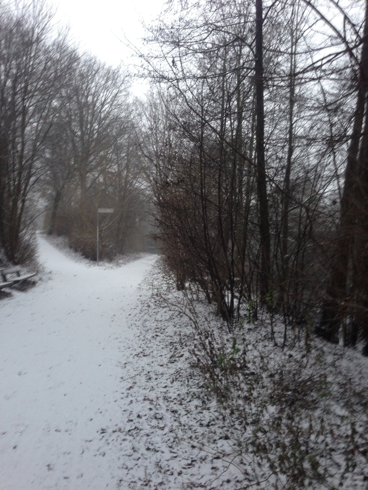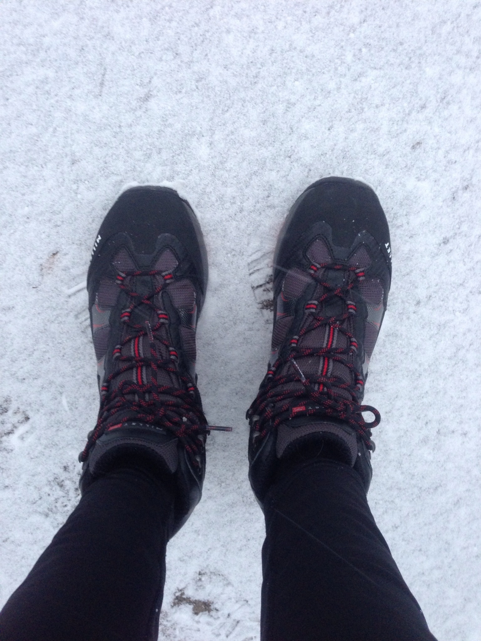 Temps de neige et de froid pour l’entraînement matinal du vendredi 22 décembre. Seules les oies et les runners sont de sortie de si bonne heure! Bonne opportunité pour tester la paire de « fast hiking », chaussure de course de montagne presque aussi légère que des running. Super efficace et très confortable. A tester sur des distances supérieures à 10kms.