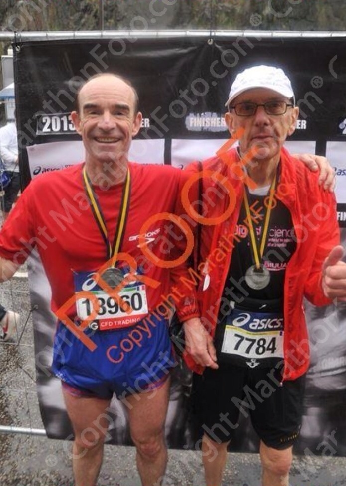 Toujours sous la pluie et désormais le froid d’après course avec mon pote Thibault.