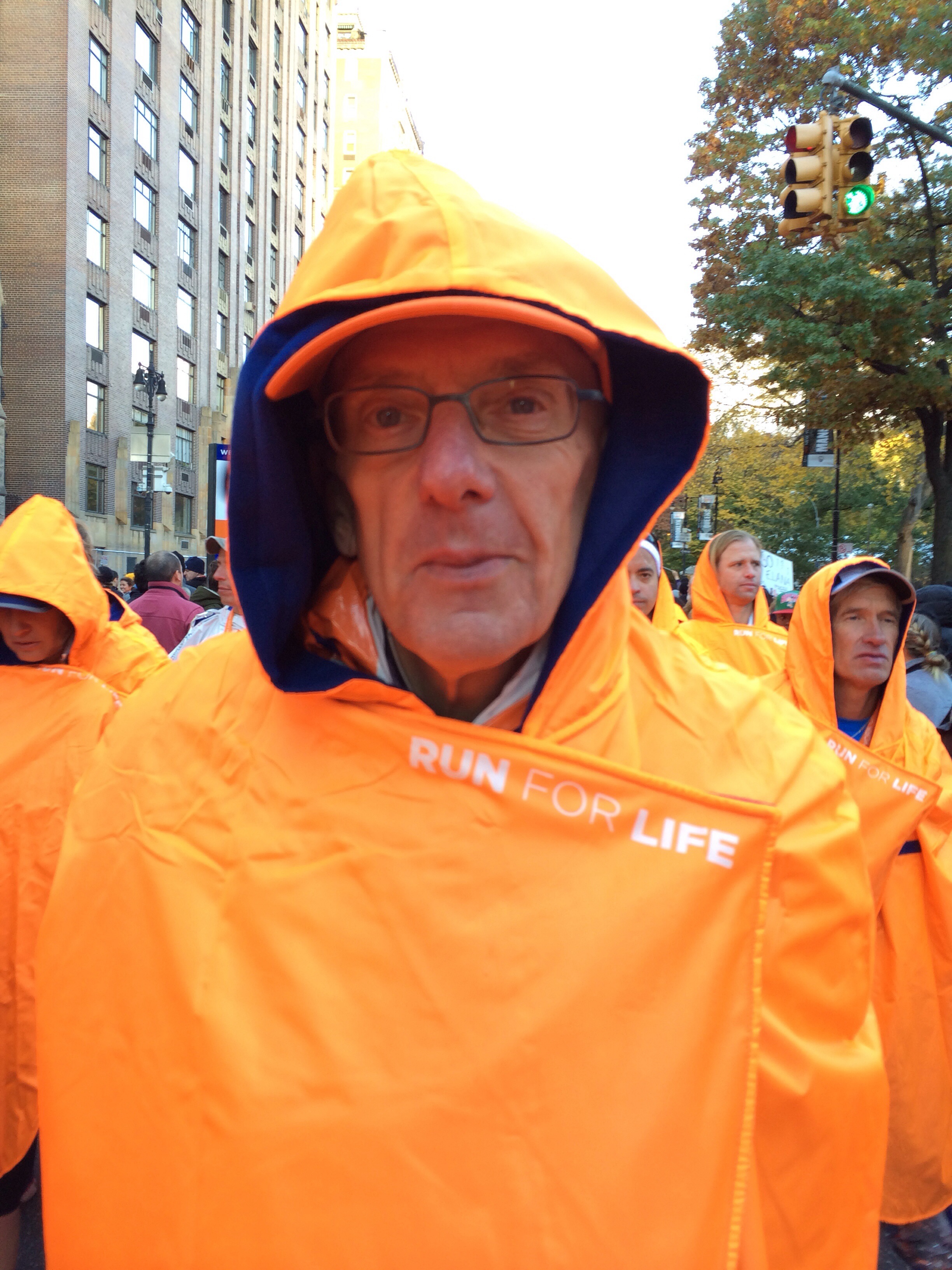 Pressées de rentrer à l’hôtel après les 42 kms. Mais il fallait plus de 2 heures pour sortir de Central Park. Heureusement, l’organisation nous a sans doute fait le plus beau cadeau post-marathon que j’ai été amené à recevoir. Un magnifique pancho moltoné à l’intérieur et scratché sur le devant. Une irrésistible sensation d’être protégé du froid qui était vif. Nous avons tous apprécié. Tard dans la soirée les rues de New York étaient encore « remplies » de ces petits bonhommes oranges.