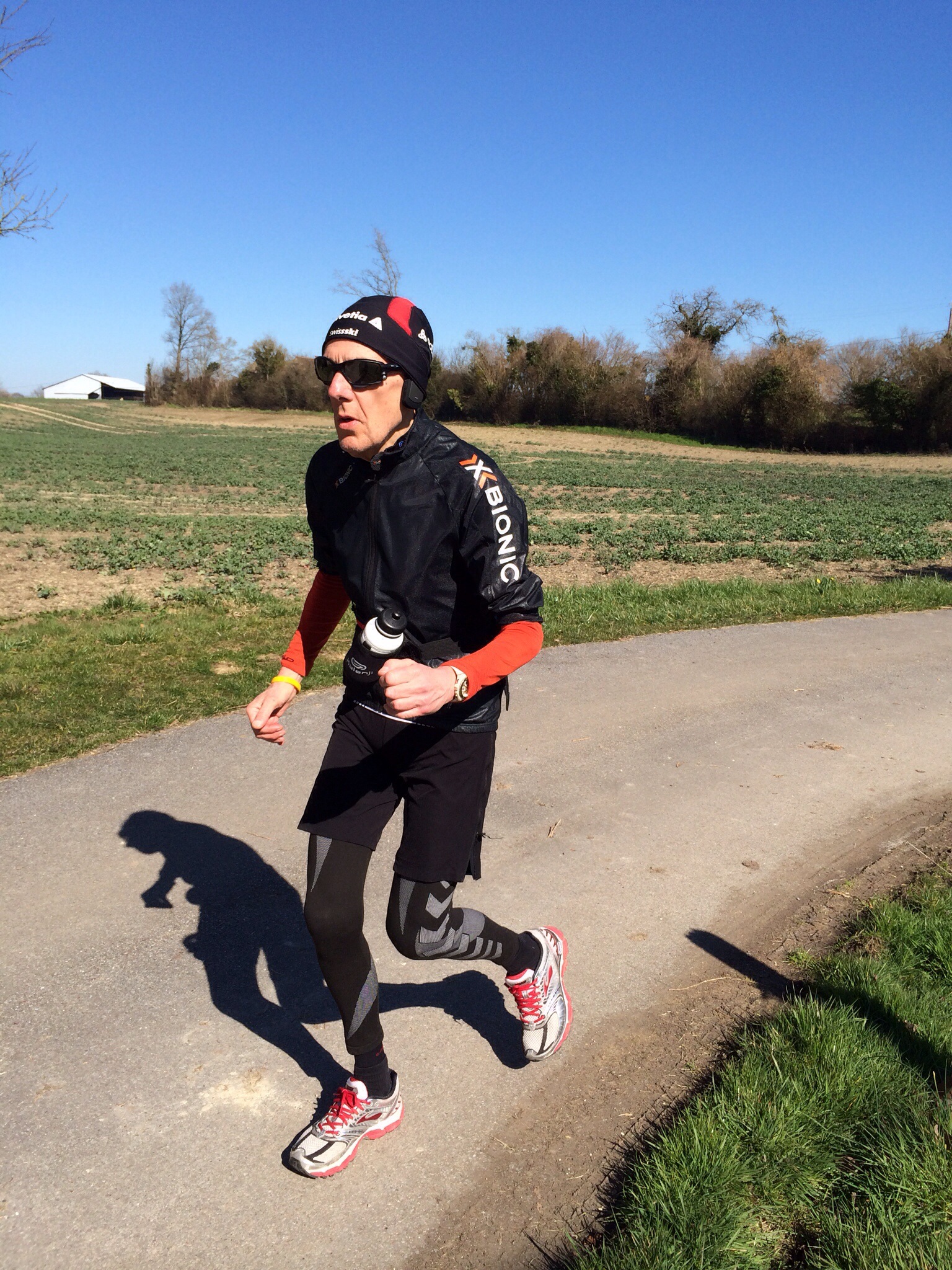 20 kms au compteur ce matin, seul, sur un parcours très vallonné (le Perche) avec donc pas mal de montées. Le grand soleil était au rendez vous et j’ai eu très chaud dans mes habits « d’hiver ». Une erreur à ne pas reproduire dimanche prochain. Ça sert aussi à ça l’entraînement. Sinon que du plaisir avec des paysages d’une grande beauté. Côté forme, le foncier va bien, bien sûr, mais les muscles inférieurs, plus habitués au vélo ces derniers temps, doivent « se refaire ». Au final du positif et j’en suis ravi.