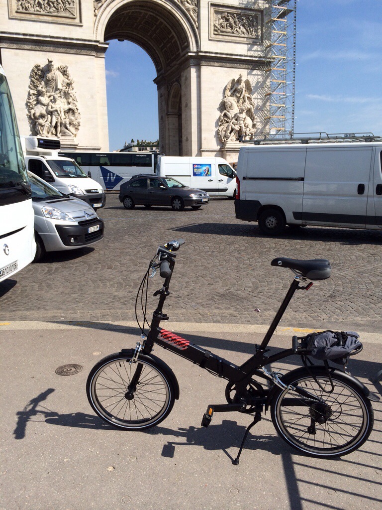 Depuis que Frankou m’a fait essayer, à l’occasion d’une cyclo, son Birdy, j’en rêve, tant j’en garde un bon souvenir. Parfaitement adapté à mon approche du vélo en ville, j’ai souhaité « sauter le pas ». Pas question d’acheter Decathlon ou une marque « grande surface » quelconque (le vendeur de decathlon a eu d’ailleurs la grande honnettée de me conseiller en me disant d’acheter une marque réputée et non pas un de ses vélos pliants. Je le remercie sincèrement et notamment pour cela je retournerai dans son magasin pour de besoins. Une bien belle attitude commerciale.) Alors quelle machine. Un Birdy, la Rolls (plutôt la Mercedes) des velos pliants? Un Brompton (c’est lui la Rolls)? Non beaucoup trop cher. Un Dahon au rapport qualité/prix séduisant avec la possibilité d’un 16 pouces? Et puis finalement en « errant » dans Paris comme j’en ai l’habitude je me suis retrouvé devant un revendeur « Giant » que je connais bien et qui, compte tenu de mon besoin, m’a présenté son Halfway 2014. Un essai et je repars avec. C’était mercredi. Depuis j’ai fait deux sorties dans Paris et vraiment je ne regrette pas. Aussi confortable que souple dans son utilisation urbaine tout en ayant « une sportivité » qui me rappelle (de courts instants) mon S Works Venge. Un investissement apparemment réussi, d’autant plus que le prix ne me semble pas trop exagéré compte tenu des qualités de la machine.