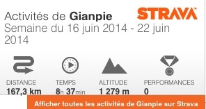 Majorité de parcours sur Niner et aussi beaucoup de montées courtes généralement mais pentues (7 / 9 %). Malgré tout pas mécontent de cette semaine essentiellement vélo.