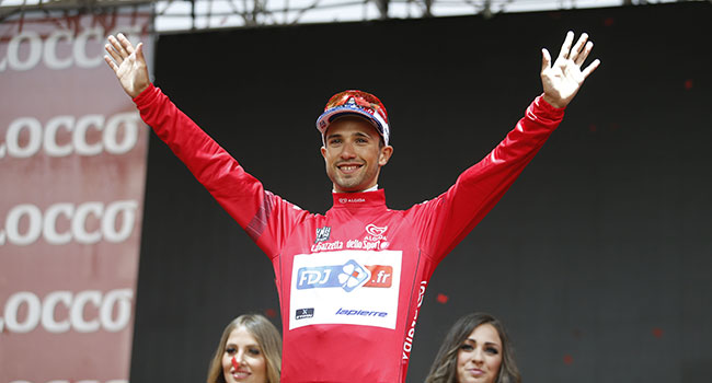 Certainement un choix stratégique, suite au départ de la FdJ annoncé pour l’an prochain du sprinter maillot rouge au Giro et triple vainqueur d’étapes. Et même si le récent maillot tricolore gagné par le Picard a certainement apporté un peu de sérénité au manager de la FdJ, on est maintenant en droit d’attendre des résultats de la part d’Arnaud. Personnellement, je n’y crois pas. Peut être pas assez de puissance, mais surtout absence de » présence physique » dans les sprints. Mais ce n’est que mon point de vue et malgré tout je souhaite sincèrement que le sprinter gagne de belles étapes, comme cela avait été le cas pour Nacer lors du Giro même si il avait bénéficié du retrait rapide de Marcel Kittel. Petite égalité pour Arnaud suite à la chute de Marc Cavendish.