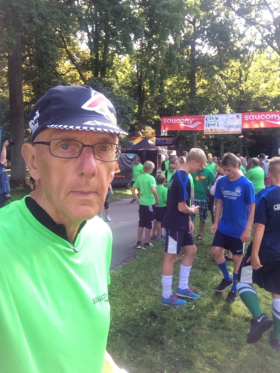 Cette course organisée par le magasin de running City Sport, dont le créateur est Erwin Gholke coureur réputé de l’ex RDA, regroupe, dans un magnifique parc verdoyant, environ 750 coureurs. Parcours de 2,5kms à répéter le nombre de fois que l’on veut, dont le départ est donné a 18h quand il fait un peu moins chaud. J’ai vraiment beaucoup apprécié cette épreuve, très sympa et super bien organisée. Ici on s’inscrit en payant un droit de10 euros, on vous remet un tee-shirt technique (sponsor Saucony) et vous avez droit du début à la fin à un buffet très (très) garni avec gâteaux, pommes, bananes, boissons, café… Tous les runners s’acquittent du droit d’inscription, mais si vous souhaitez « tricher » (ce n’est généralement pas le cas pour les allemands) vous pouvez courir et bénéficier des prestations sans aucun problème.