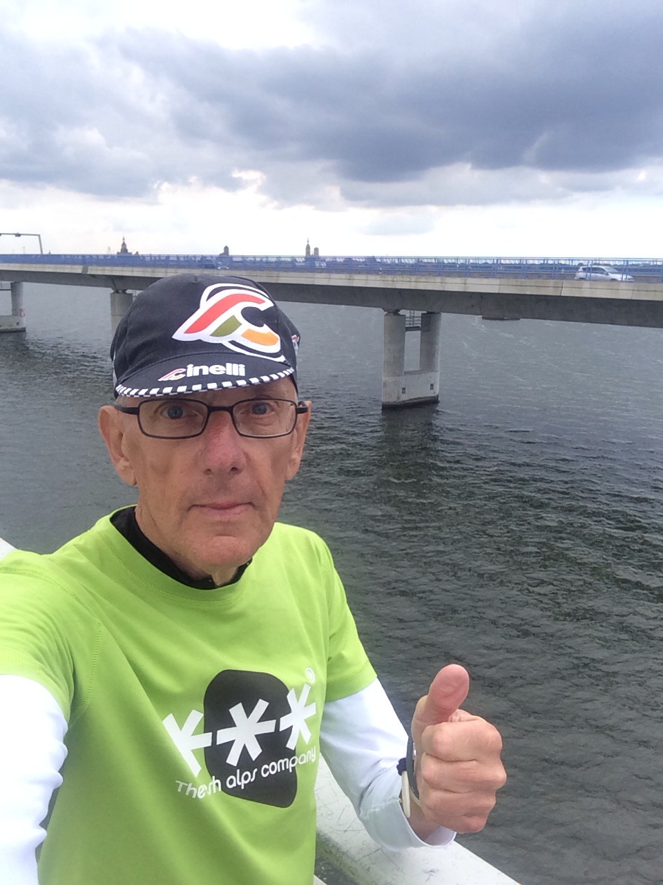 4 kms de traversée environ pour se rendre depuis la perle de la Baltique qu’est la ville de Stralsund sur la plus grande île allemande Rügen. Parcours incroyable vent de face sur le Rügendamm un pont « digue » mitoyen du Rügenbrucke où passe l’autoroute. Un grand moment de course et de bonheur. J’aime!