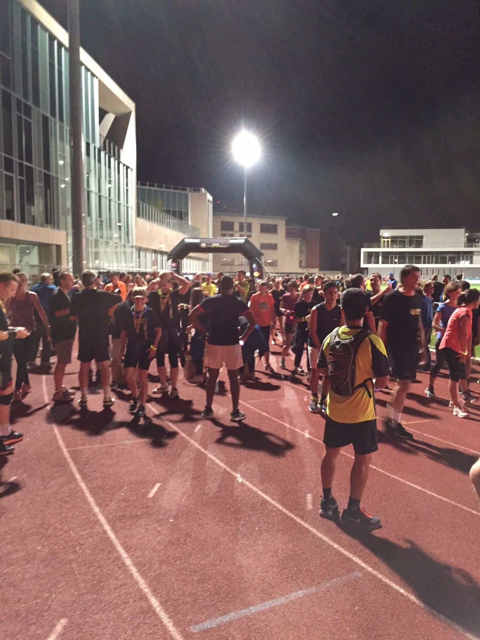Rares sont les occasions de courir la nuit à Paris. Cette possibilité était offerte hier soir, à 21h, à 4000 runners sur un parcours situé en proche banlieue, à Courbevoie. J’ai saisis cette opportunité, très accessible pour moi puisque le départ avait lieu sous mes fenêtres. Pour l’occase la ville nous a gâtée. Départ festif avec DJ, gym, pétards et couronnes fluorescentes… Arrivée dans le magnifique stade JP Rives (vraiment un des plus beaux de la région) où un ravito sympa attendait les runners. Seul point négatif, d’après moi, beaucoup de coureurs « occasionnels » partis en poussant tout sur leur passage, tout au moins sur les 5 premiers, parce qu’après… Et puis aussi une chaussée rendue un peu glissante suite aux abondantes chutes de pluie de début de soirée. Heureusement pas d’intempéries de 21 à 22h!