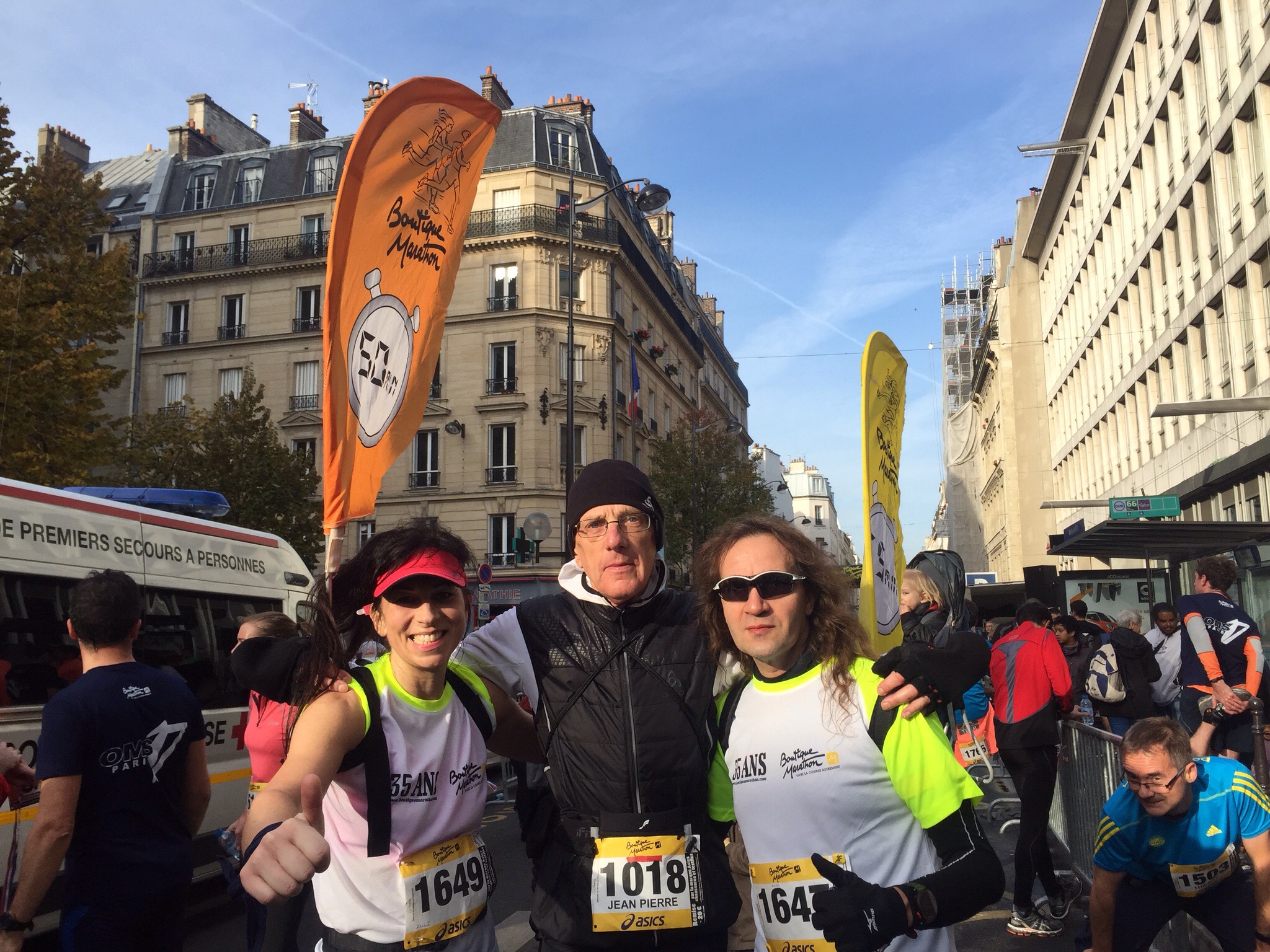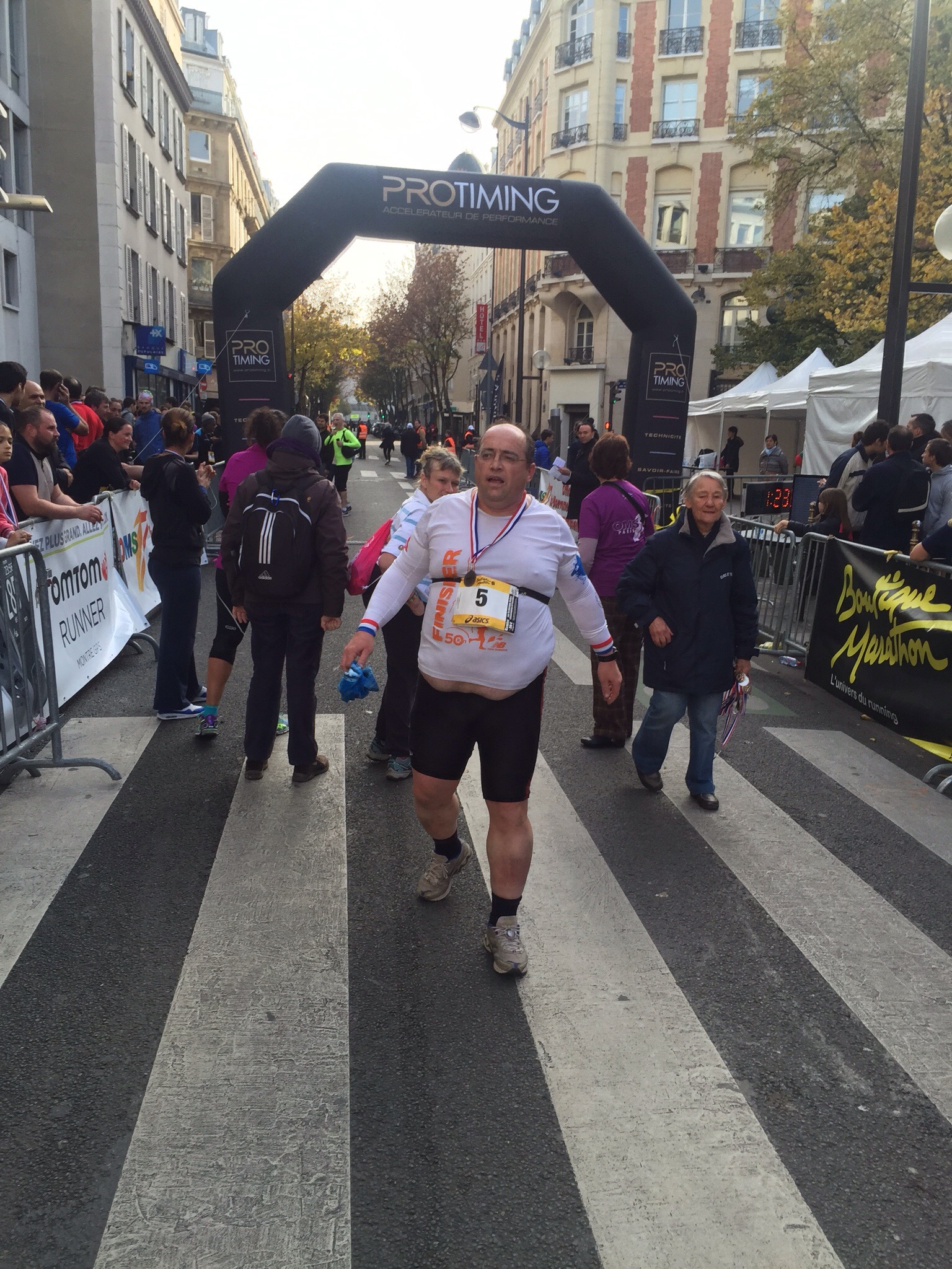 Temps ensoleillé et presque chaud (du rarement vu à Paris en novembre), pour 1800 coureurs au départ à 10h15 de cette classique, dont c’était la 29ème édition, sur un parcours de deux boucles de 5kms quelquefois dans de petites rues, avec peu de lignes droites, donc beaucoup de virages. Cette absence de fluidité en a sûrement gêné plus d’un. Mais on s’en accommode parfaitement, principalement lorsque l’on court, comme moi, pour la plaisir. Plaisir également de retrouver quelques potes comme Dare, cette fois en meneur d’allure du 55mns. Une bonne matinée.