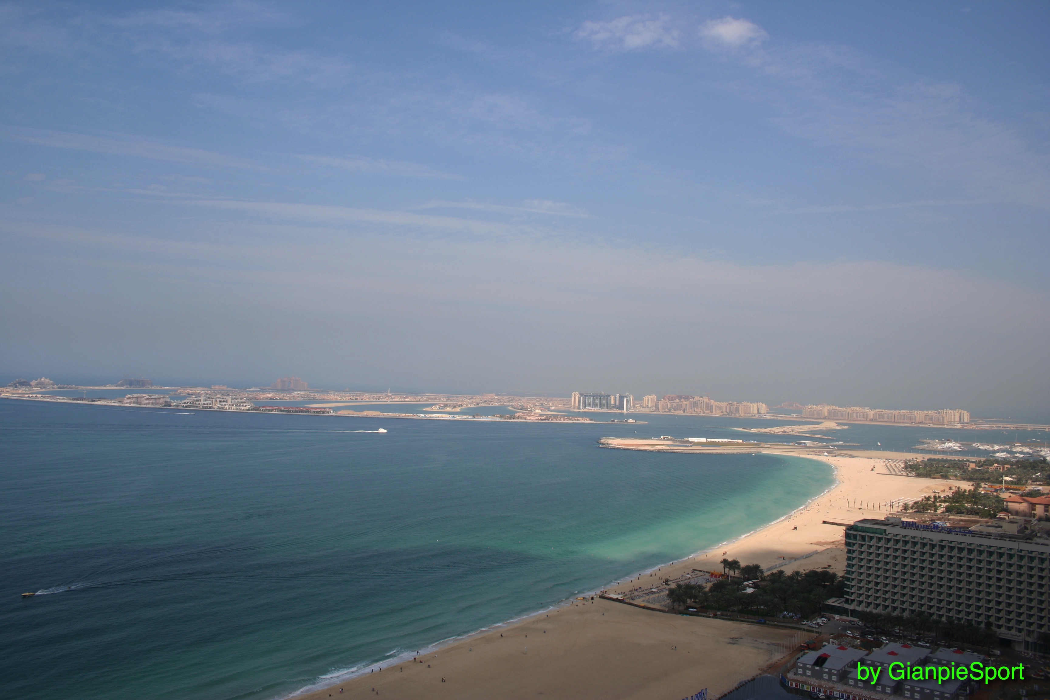La photo (plage et île artificielle en forme de palmier) a été prise du balcon de ma chambre d’hôtel (le Sofitel) le 22 janvier 2011 à 10h 25 (local).