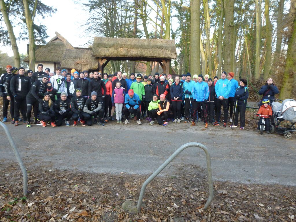 Journée ensoleillée et …très très froide. Un choc climatique par rapport au temps des derniers jours rencontré à Paris. Le thermomètre n’est pas grimpé au dessus du zéro degré même en pleine journée, avec un ressenti dû au vent d’est, de moins dix degré au petit matin lors de la classique Silvesterlauf courue par une cinquantaine de runners du club local. Bien sympathique rencontre ponctuée par un vin chaud (sans alcool). Personnellement, en binôme avec Isabelle Running, j’ai vraiment apprécié malgré le froid (j’ai même porté la cagoule).