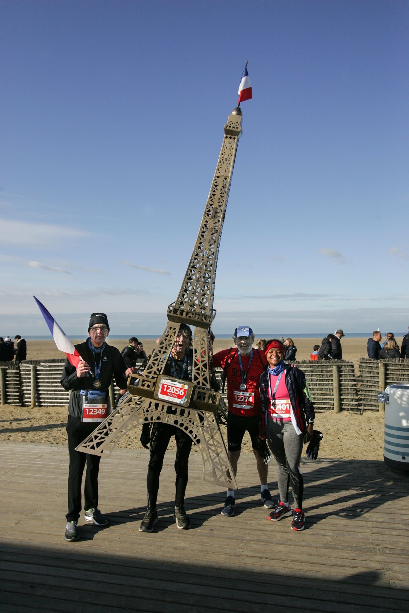 Inscrit tardivement à cette épreuve placée pour moi entre, d’une part Dublin, courue il y a deux semaines, Rome il y a une semaine et d’autre part Firenze la semaine prochaine, je ne savais pas trop où j’allais « mettre les pieds » d’autant plus qu’il s’agissait d’une première pour Deauville. Et bien je suis très très satisfait d’avoir participé, à la fois parce que j’ai couru avec mes potes Michel et GG dont je ne dirai jamais assez que la force qui les anime n’a pas d’égal et vraiment me surprend autant qu’elle me ravit, mais aussi par la (les) course du marathon in Deauville. Pour une première c’est une réussite presque parfaite. L’organisation dans son ensemble, le parcours somptueux (on traverse des villages typiques, on côtoie des demeures sublimes, on jouxte le champ de courses et de nombreux haras et point final, comme apothéose, on foule les célèbres planches de Deauville après avoir longé la plage jusqu’au franchissement de la ligne d’arrivée. A noter également un départ très réussi après que La Marseillaise ait été jouée. Enfin la médaille est une parfaite réussite. Seul petit point à améliorer, peut être , les ravitos qui manquaient pour moi de consistance. 6000 coureurs avaient répondu présents sur les trois épreuves (2600 sur le marathon, 2400 sur le semi et 1000 sur le 5 kms). Enfin, malgré un froid saisissant, notamment au départ, la météo a été très clémente et le soleil a même brillé. Un remerciement spécial à Jeanne qui s’est jointe à nous pour nous apporter une assistance précieuse et la joie de vivre durant le parcours. Remerciements aussi à mon pote Momo qui a « négocié » sur le tard ma participation à cette course. Conclusion, j’ai adoré et je reviendrai certainement courir ici.