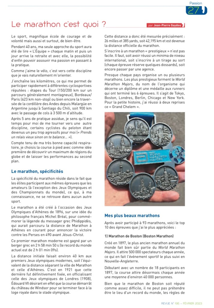 On m’a demandé d’écrire un article sur le marathon pour une revue qui n’est pas spécialisée dans le sport. Cet écrit s’adresse donc à des lecteurs qui ne connaissent pas forcément cette discipline. C’est dans ce sens que j’ai rédigé mon texte. Je vous en livre les pages.