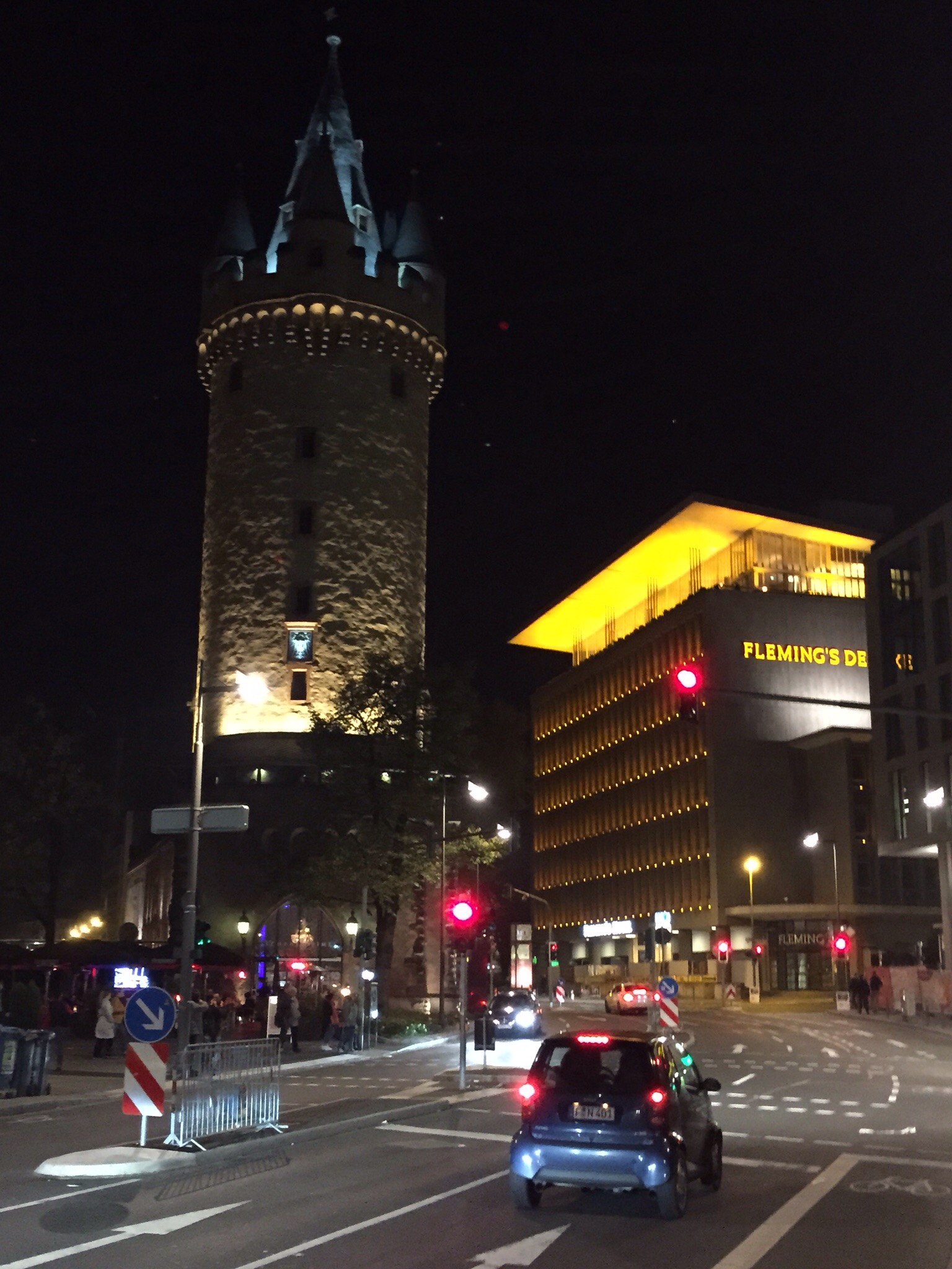 Après le marathon, à la tombée de la nuit, Dare et moi nous nous sommes rendus (à pieds) à la vieille ville qui, dans un périmètre restreint, présente quelques splendeurs particulièrement bien mises en évidence de nuit avec les éclairages. Après quelques pas, nous nous trouvons en plein coeur du Römerberg. Jusqu’à la cathédrale, la place est limitée par des maisons historiques à colombages. Elles portent des noms tels que « Grand ange », « Griffon d’or » ou « Etoile noire ». Ces maisons ont été reconstruites fidèles aux originales, comme si le terrible bombardement de mars 1944 qui a détruit l’ensemble de la vieille ville n’avait jamais existé. Et puis, pour terminer cette vraiment sympathique journée, diner au resto du Savigny Mc Gallery Hôtel. Succulent. Vraiment un excellent week-end qui se poursuivra d’ailleurs demain par quelques visites avant d’entreprendre notre voyage retour pour Paris en fin d’après midi.