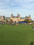 On m’avait prévenu, le centre ville d’Amsterdam est incontournable mais le parcours du marathon laisse à désirer! Effectivement il y un gap entre les deux. Sauf… que pour moi, c’est plutôt le contraire. Le centre ville avec ses anneaux de canaux tous semblables (quand on en a vu un, on les a tous visités), ses nombreux cafés et restos à touristes, ses magasins a souvenirs…, je ne peux pas dire que je raffole, même si c’est loin d’être désagréable . Au contraire, par contre, le parcours du marathon qui part (et finit) au vieux stade olympique (1928) puis traverse rapidement le sud de la ville pour vous amener au 10ème km longer l’Amstel sur 15 kms avec ses magnifiques villas et moulins avant de traverser le Vondelpark à l’ambiance unique sans oublier, bien sûr, de passer devant des bâtiments emblématiques comme le Rijksmuseum et le musée maritime, est unique et me plaît beaucoup. Seul petit bémol d’une très bonne organisation, quelques passages étroits en début de parcours ralentissaient sensiblement l’allure. Mais à part ça, pour moi, c’était top. J’ai beaucoup aimé.