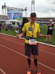 C’est donc à 9h30, ce matin, que les 15000 marathoniens ont pris le départ sous un beau soleil qui s’est rapidement (au bout d’une heure) muté en un ciel couvert et même pluvieux avec quelques passages de pluie fine, mais rien de bien méchant. Des coureurs venus de loin car au côté de nombreux Français et Italiens j’ai croisé des Russes, Japonais, Brésiliens, Chiliens, Mexicains… et même des coureurs venus d’Islande.