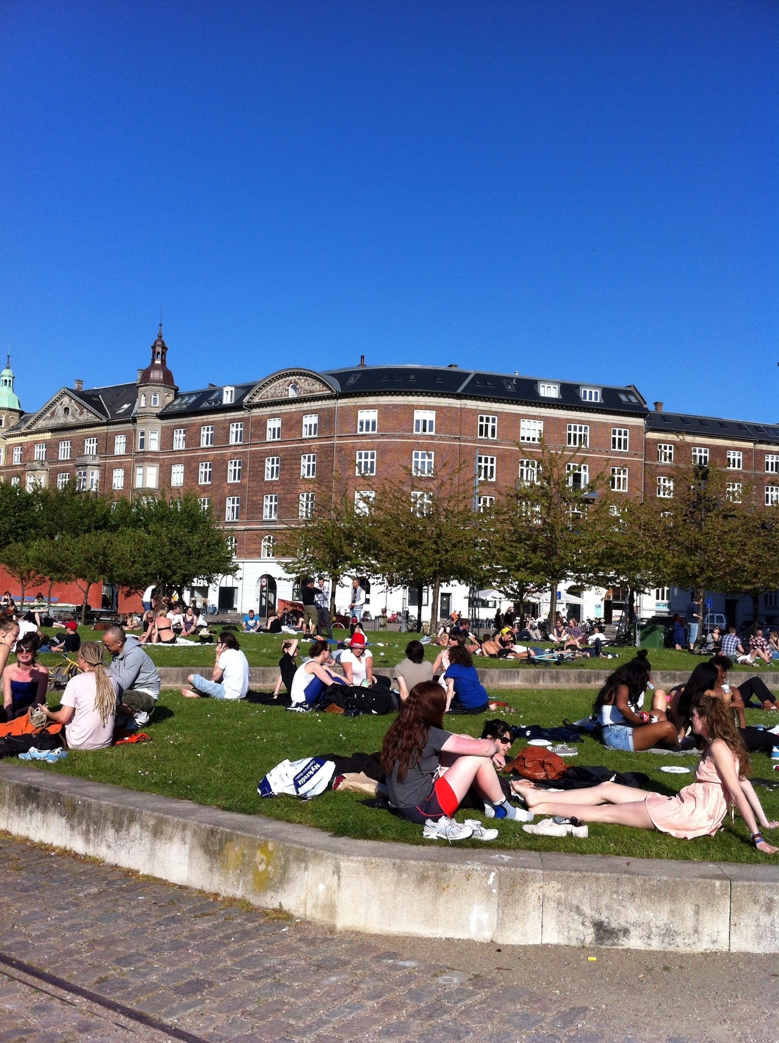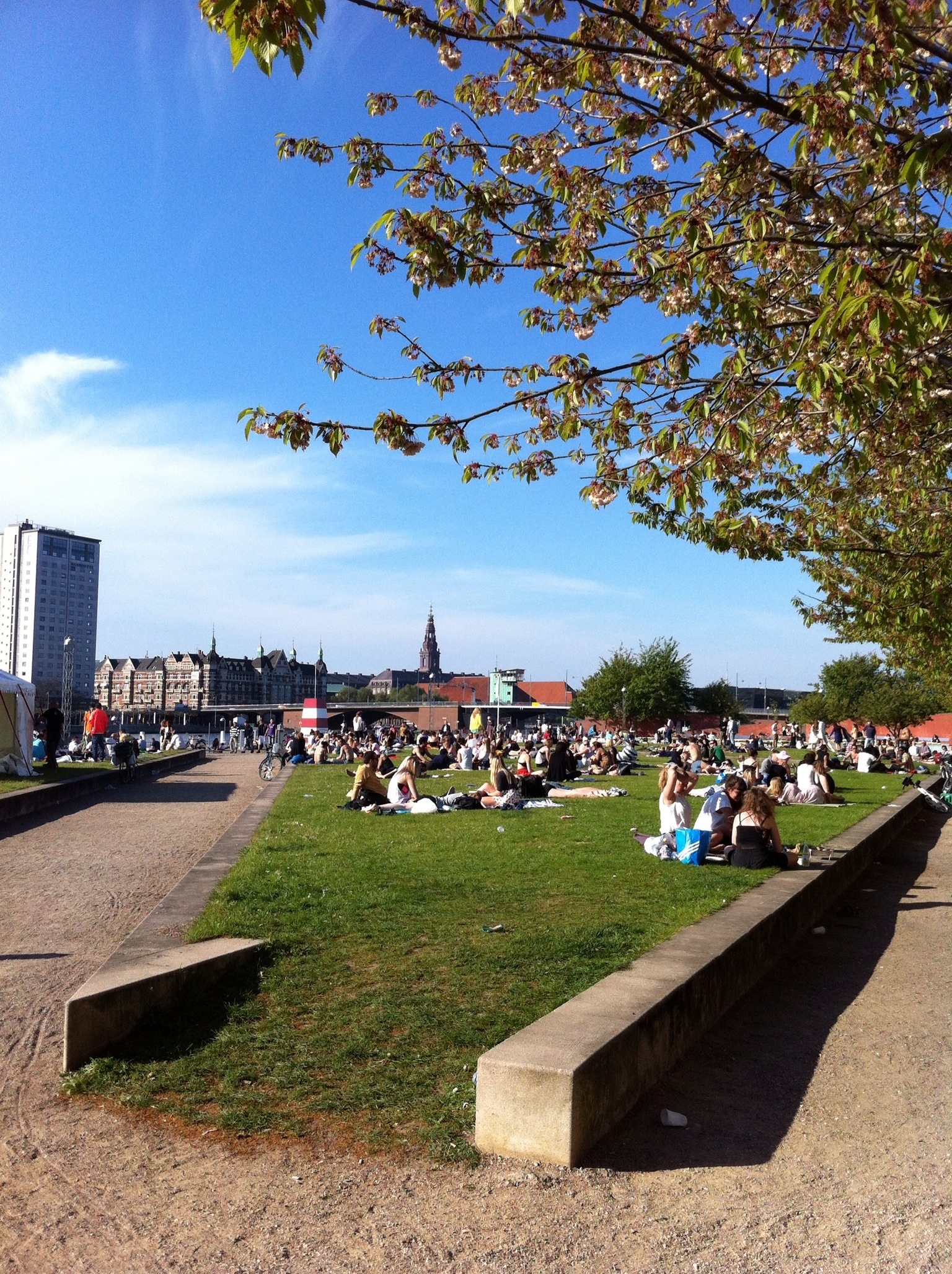 Deux heures après l’arrivée, je décide d’aller flâner sur les quais. Ballade vraiment sympa, d’autant plus que physiquement je me sens en pleine forme. Il y a vraiment beaucoup, mais vraiment beaucoup de monde allongé dans l’herbe ou faisant des grillades dans de petit barbecue portatif. J’adore les pays du nord, tellement accueillant, où les gens sont toujours disposés à t’aider, où, me semble-t-il, le sport ce n’est pas uniquement le foot, et où on peut venir faire son marathon sur son vélo (généralement beau d’ailleurs) et le retrouver intact au retour!